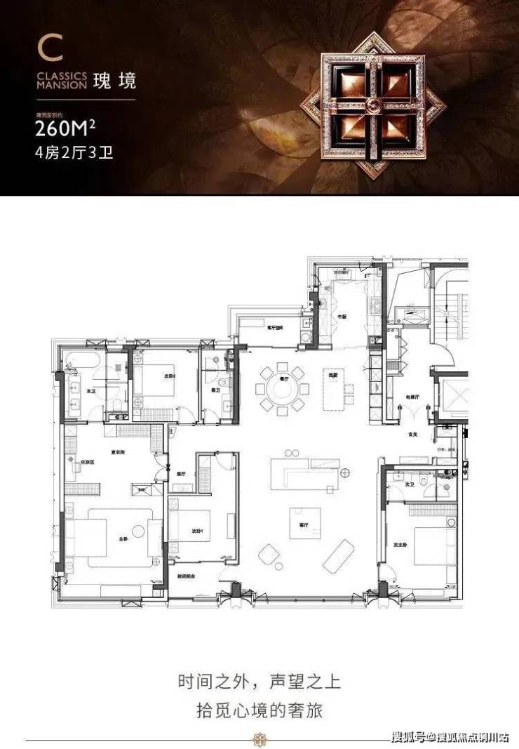三大户型全部都是大4房3卫设计,双套卧,客厅通铺阳台,豪宅尺度感拉满。