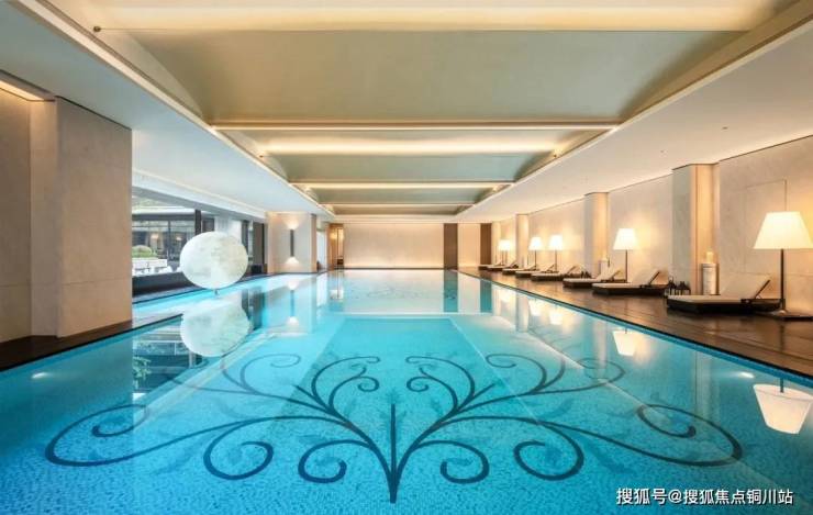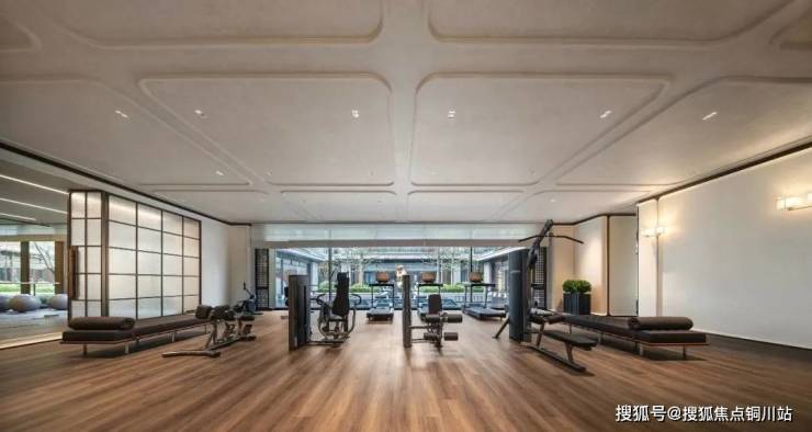 会所里还有设备满配的健身房、带地暖的瑜伽室;室内恒温泳池做出了「海上生明月」的场景感。泳池、瑜伽室和健身房,都正对着下沉式庭院。运动健身的神清气爽与看风景的心旷神怡,在这里合二为一。