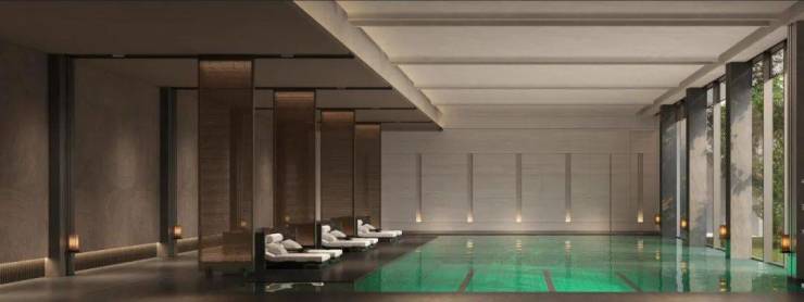 精装设计则是由潘冉(南京名谷建筑创始人)打造,五重入园仪式感拉满,地上设有茶室、邻里中心;地下泳池、健身区、私宴厅、酒廊全配齐,开派对、谈生意、游泳健身、做 SPA 全搞定!