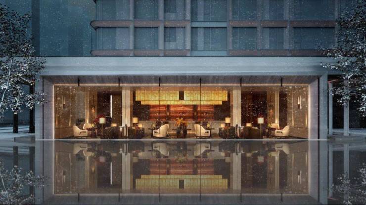 项目底层的酒廊、茶室与私宴厅,犹如一个透明的社交盒子,享受隐于自然的静谧。