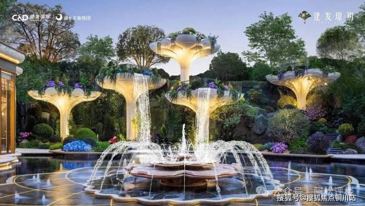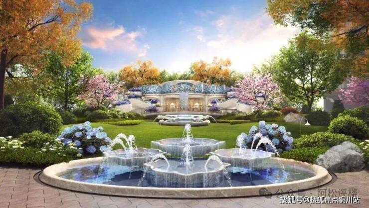 庭院上方的中庭达8000平(目前仅局部可见),包含超大琉璃露台、草坪空间和流水叠瀑,同样组成了一幅只有古典名画中的场景。据悉,从前庭到中庭,延伸出的园林中轴对景长约近百米。各楼栋每一套房子的窗前,都能无遮挡欣赏到这条风景线。