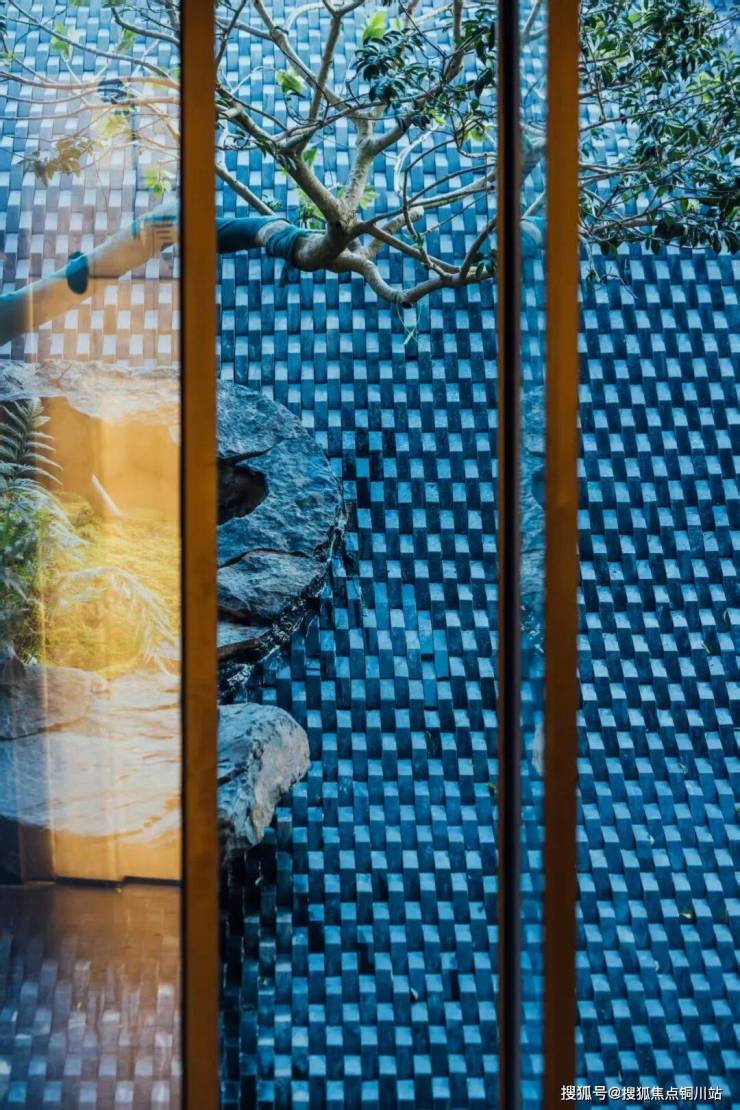 院里的绿植沿着步道错落分布,造型罗汉松、由三种肌理组合成的景墙、水纹玻璃吊灯……每一处细节,都是匠心的无声告白。