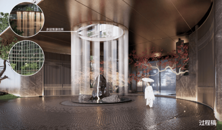 首创6米落差的巨瀑景观 度假式下沉花园会所