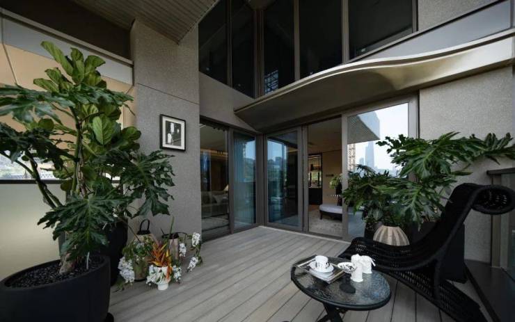 以140㎡江印偶数层户型为例,采用了双露台设计,板式结构设计让居者享受到犹如别墅生活的乐趣,将惬意生活写实到居所的每个角落。