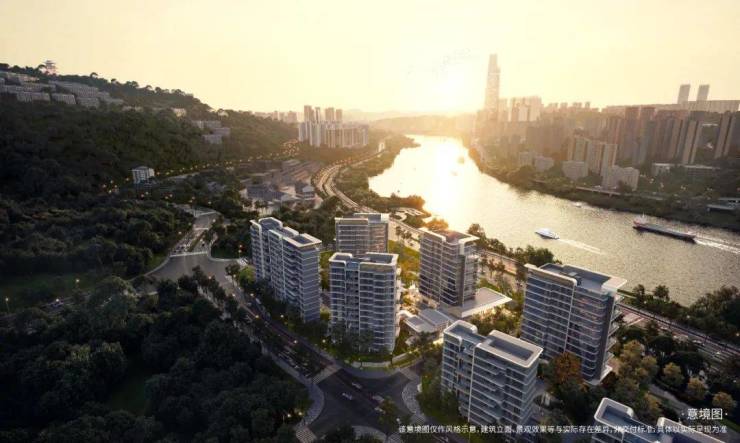 戴着270°湾流曲线式顶冠+宽面玻璃的超四代建筑,将眼前的嘉陵江湾和背后的森林公园融合,像极了一座“漂浮在江岸上的山林”...