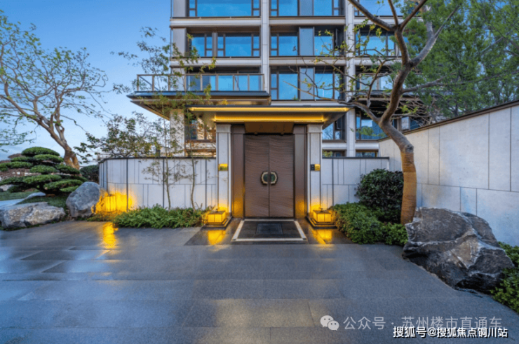 · 设计逻辑:建发・璟园提炼《仙山楼阁图》建筑元素与苏园经典,形成“飞檐翼角、层级叠退” 韵律,采用 “贝米黄石材 + 宋韵鎏金铝板 + 玻璃幕墙” 组合,檐下金属镂雕海棠祥纹为定制打造,价值不菲。