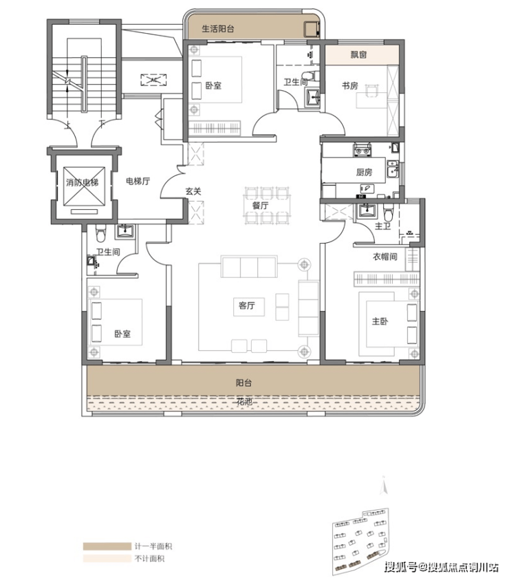 这三栋是131㎡三房+141㎡四房的组合,这两个户型的差别不大,中规中矩,都是三面宽朝南+全明户型;阳台赠送一半面积+花池全赠送,彷佛在当下市场已经成了标配。