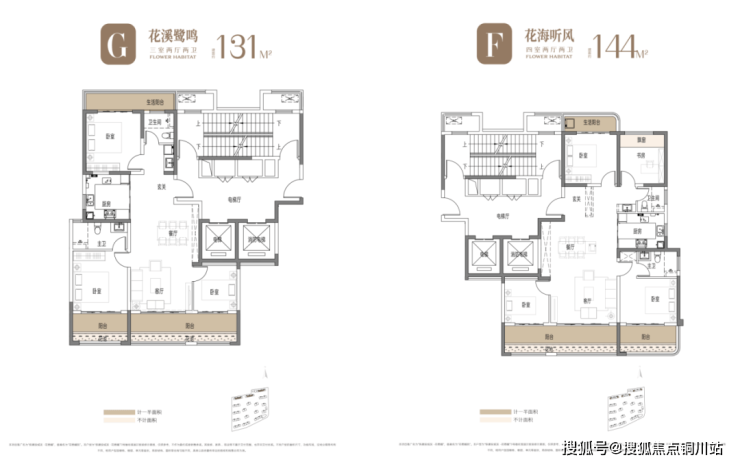 小区131㎡起步,四房为主,户户高赠送,单套综合得房率超过100%。