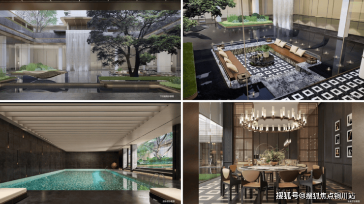外立面铝板搭配大面积LOW-E玻璃,约40米宽酒店式社区门庭,而且还标配了约1600㎡的会所及下沉庭院。