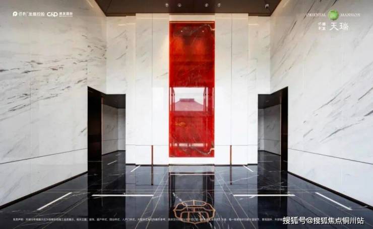 入户大堂的 大理石幕墙,是匠人根据石材原生纹理走向进行对纹排版的,耗时2个月才完成;