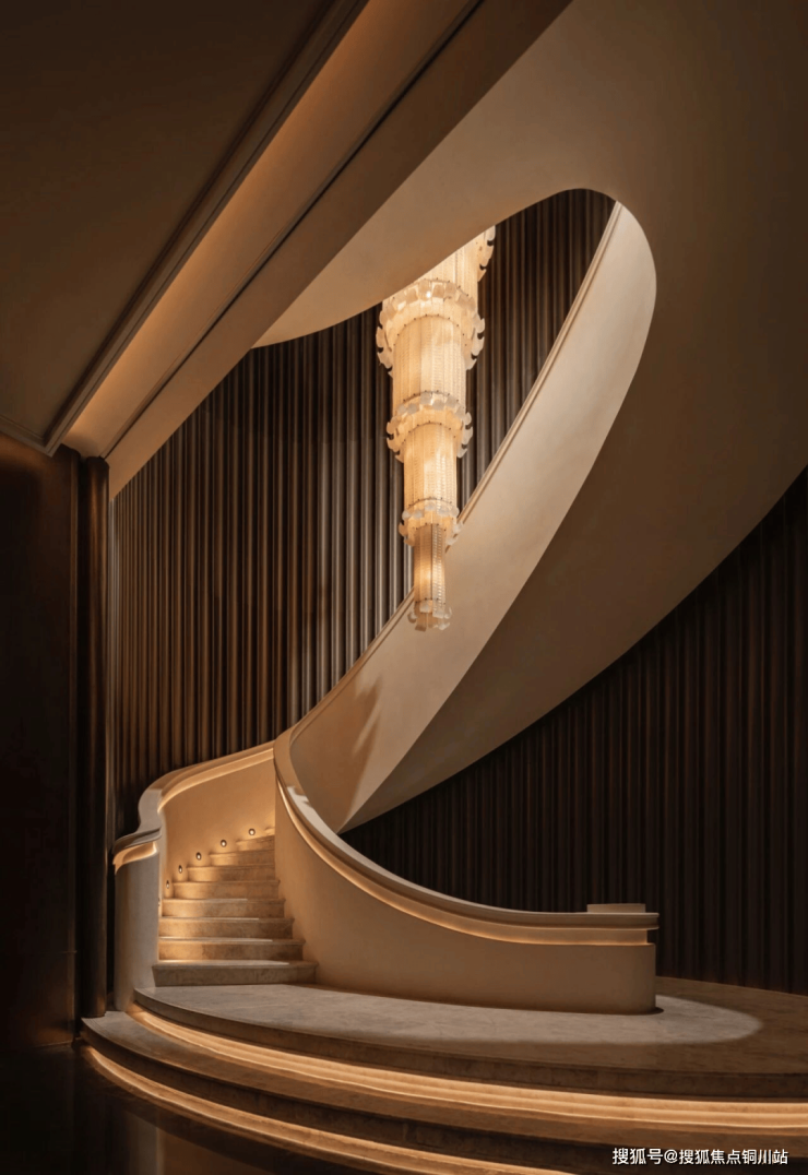 主入口处挑高约8.6米门廊构成宏大画卷。两侧铂金钻奢石镶嵌壁灯,以温暖的辉光点亮归家的路途。