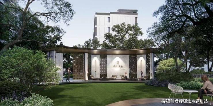 摩登会客廊架,未来会成为业主休闲交流与小聚的户外社交空间,中心圆形平台西侧则是林荫平台与休闲花园,满足业主社区洽谈与休憩功能。