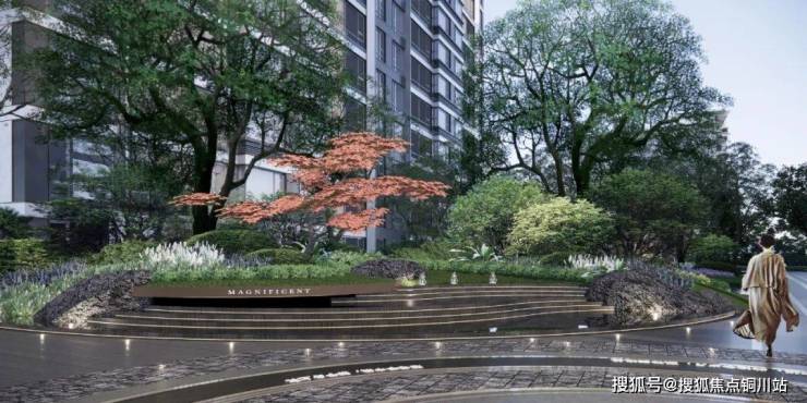 幽静的林荫空间,叠水景观与精致的灌木植物相得益彰,掩映错落,营造出园林空间的层次感。潺潺流动的叠水,不仅为景致增添了丰盈灵动,也可以调节园区小气候。中国人都说流水生财,这叠叠层层的水景,也寓意着财源滚滚。