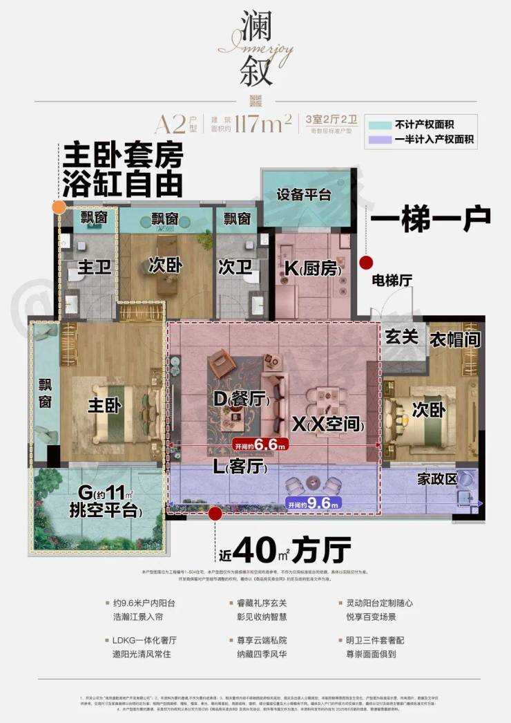 主力户型建面约148-280㎡,打造约6.4米竖厅,最高室内利用率达到约110%,空间感非常牛!建面约185户型,空中露台建面约24㎡,住在这样的房子里,身份感不彰自显。