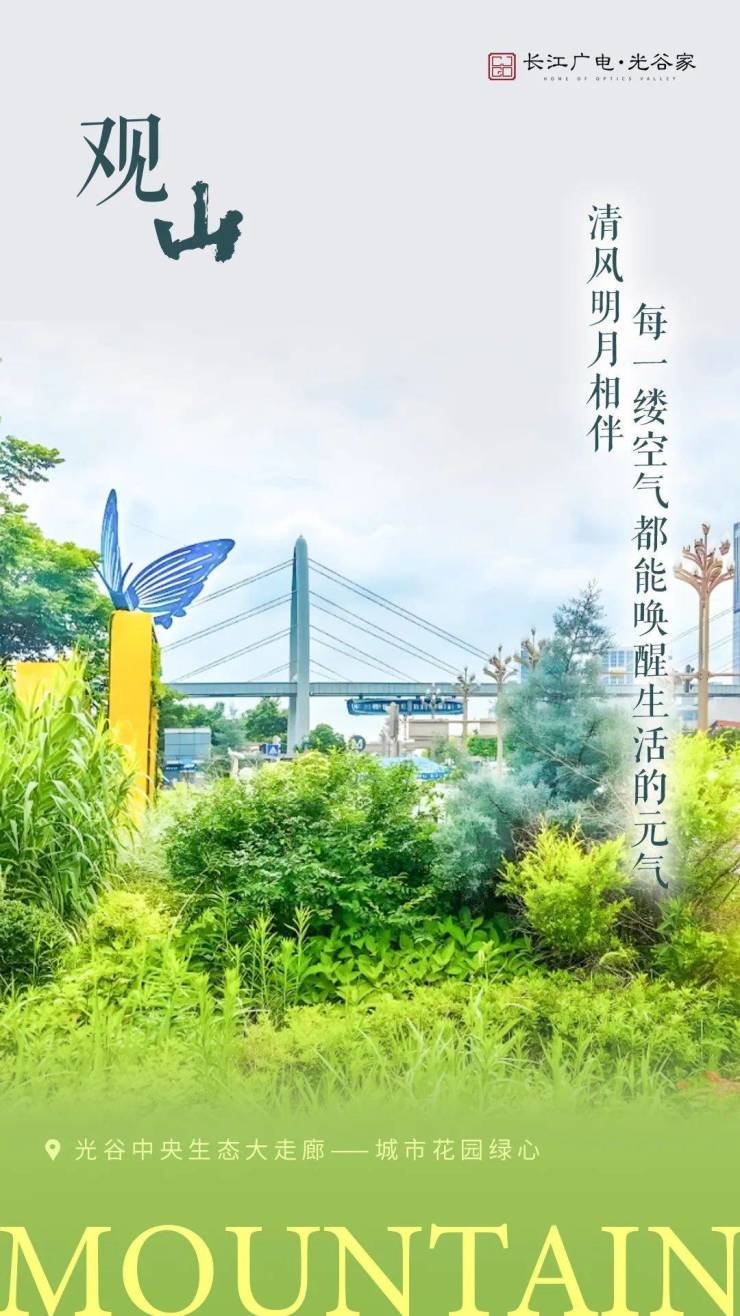长江广电・光谷家毗邻约 348 公顷的光谷生态大走廊,其绵延 10 公里的生态空间内设有光谷书房等设施,为业主提供了丰富的文化休闲体验。同时,项目被鸡公山公园、西苑公园、豹子山生态体育公园(规划中)、二妃山生态体育公园等城市级生态公园环绕,自然与建筑、生活完美融合,形成了天然的 “氧吧”,营造出绿色生态的居住氛围。项目内部还坐拥自然山体,并与园区内约 10 万方园林绿化相连,在光谷中心城的繁华地段,打造出一片绿意盎然的居住天地。下楼即可享受全龄化互动空间,满足不同年龄段业主的休闲娱乐需求。