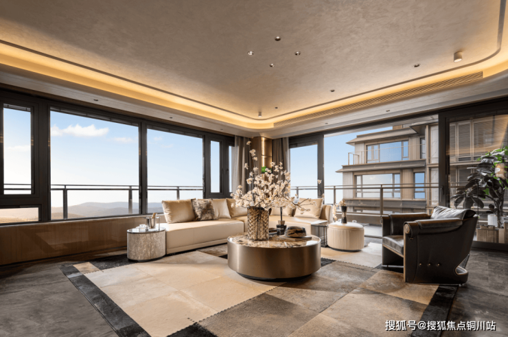 L型巨幕观景露台,270°揽尽惠山叠翠与大运河烟波,将城市繁华与自然静谧尽收眼底,重塑“空中庭院”的诗意境界。露台可设计为星空吧、瑜伽平台或是城市观景台,满足圈层社交与精神独处的双重需求。