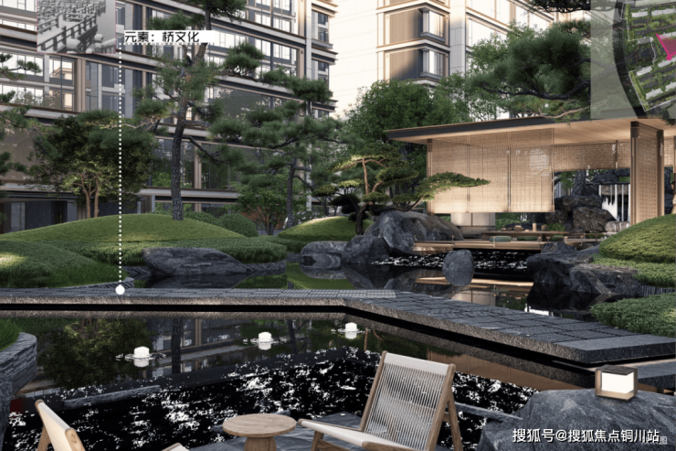 取意《千里江山图》的山水哲学与南通濠河千年文脉,以“一环两轴五景”景观规划,匠造可游、可赏、可栖的沉浸式东方园林体系,重现宋人“不下堂筵,坐穷泉壑”的理想栖居意境。