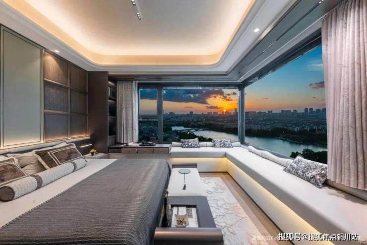 约3.1米层高与约5.6-5.9米宽厅尺度,构建出朗阔大气的空间感,搭配超尺寸落地窗和约270度观景窗设计(部分户型),将千年濠河的秀丽风光无缝引入室内,实现自然与生活的无界交融。