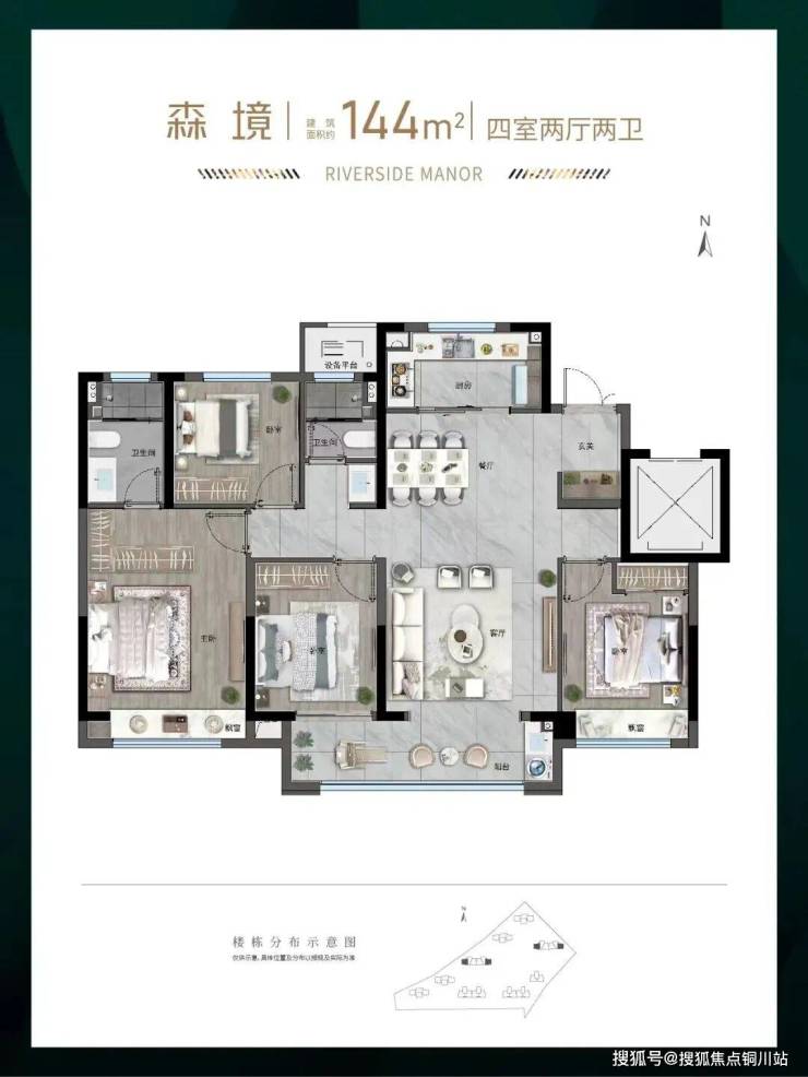 大河印就位于泉山区迎宾大道与金山东路交汇处,规划了9栋18-26层住宅产品,共672户,户型建面约117-144㎡。