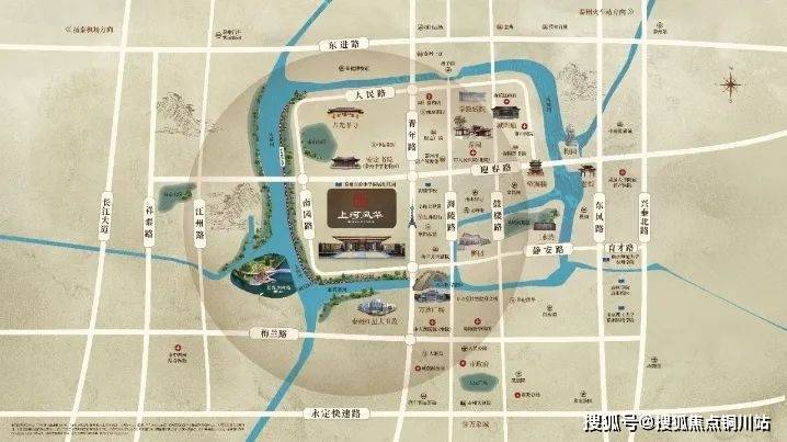 交通配套:周边直线 1km 内有 11 个公交站,距离最近的梅兰芳剧院站仅有 152m,且临近东进路、济川路、迎春路、青年路、海陵路、鼓楼路等主干道,交通路网发达,出行便利。