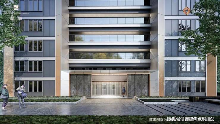 外立面则以香槟金铝板及浅灰色铝板一体板、铝板干挂、灰色石材、局部真石漆等搭配玻璃面为构思灵感