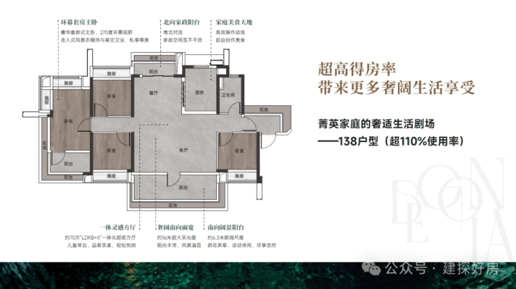 ◎对标当代华宅样本,以超110%使用率、无柱转角窗、大开间朗阔阳台、“LDKB+X”一体化设计、“巨能装”收纳设计、全功能主卧套房等独到设计,集粹大师智慧与奢装名品,呈献建面约108-140㎡高定奢装华宅,为番禺高端人居,划下崭新的时代刻度