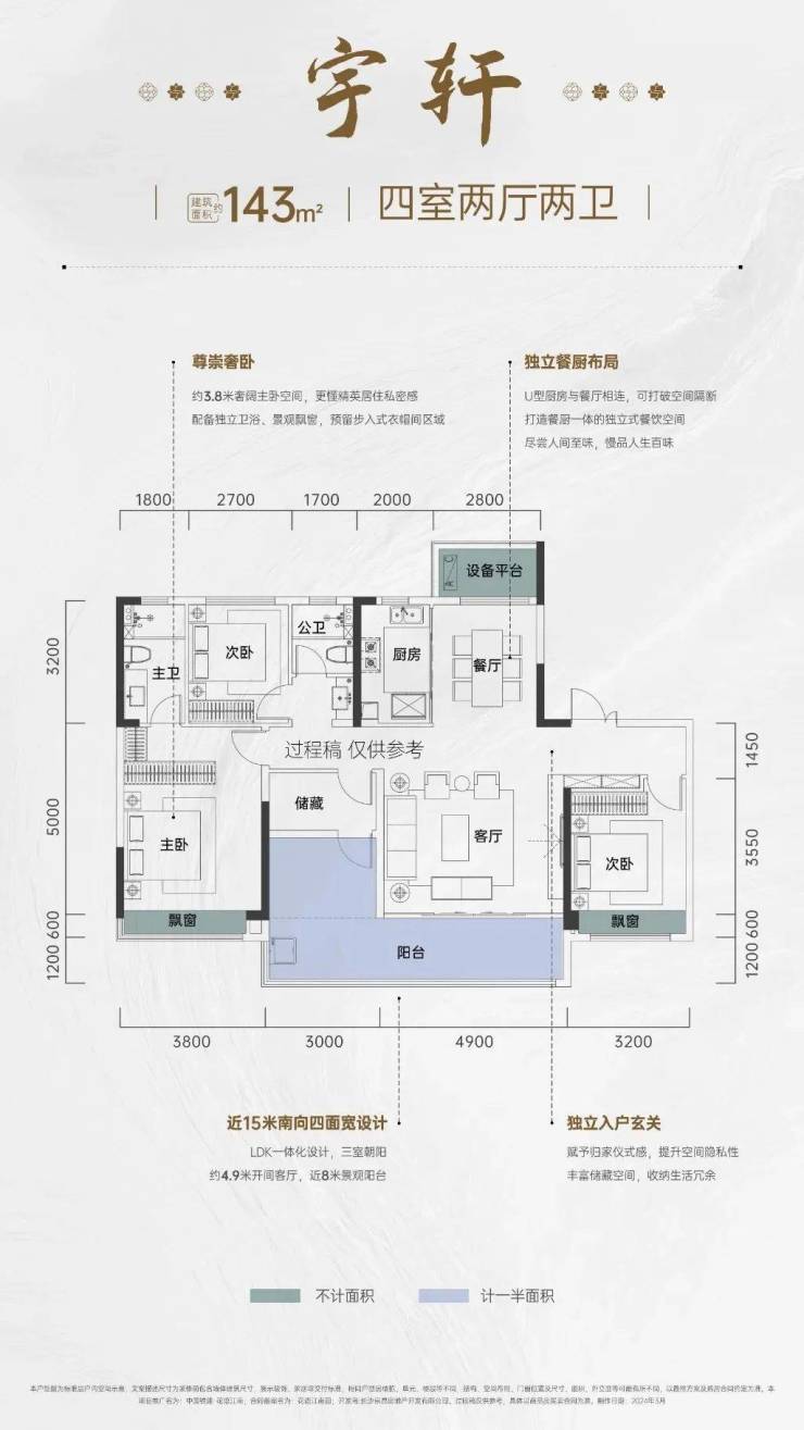 可做大横厅设计,餐客厅连接南向大阳台,宽敞大气;也可以做四房设计,满足二孩/三代同住。