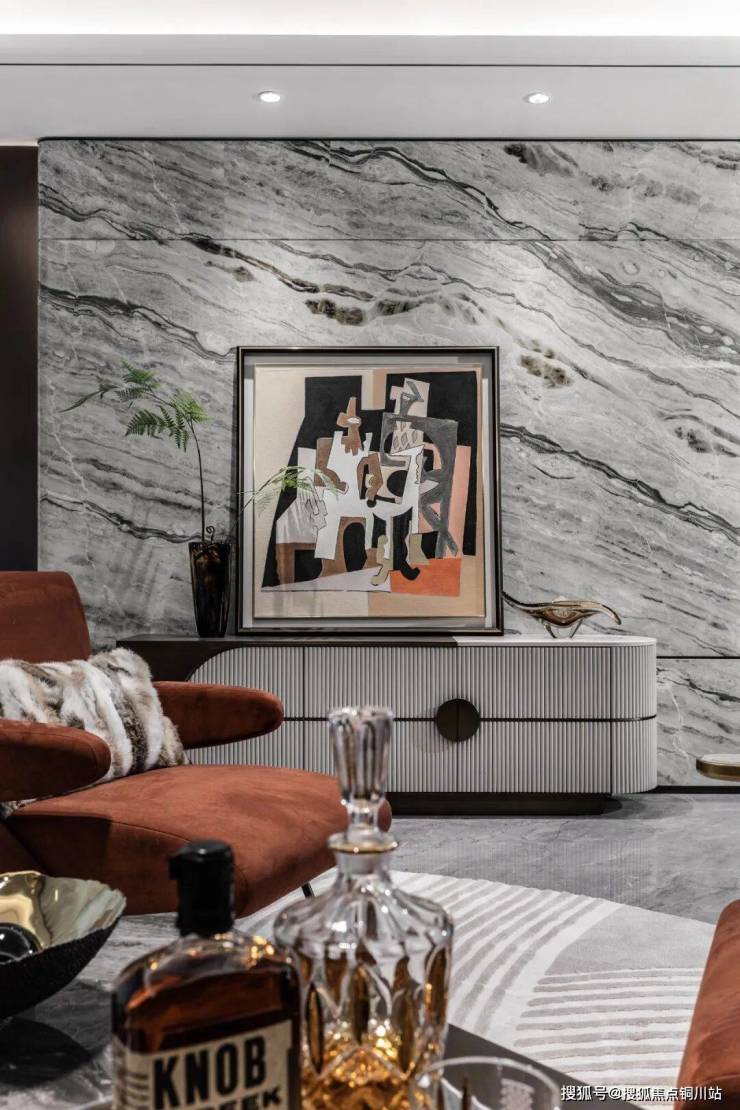 从巴西矿脉采来的奢石“雪山银狐”,对双横厅公区完美“点睛”。