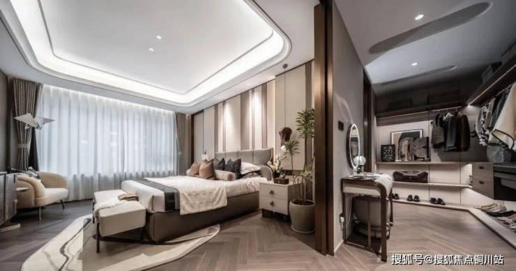 约52㎡的主卧,采用了五星级酒店的行政套房布局。
