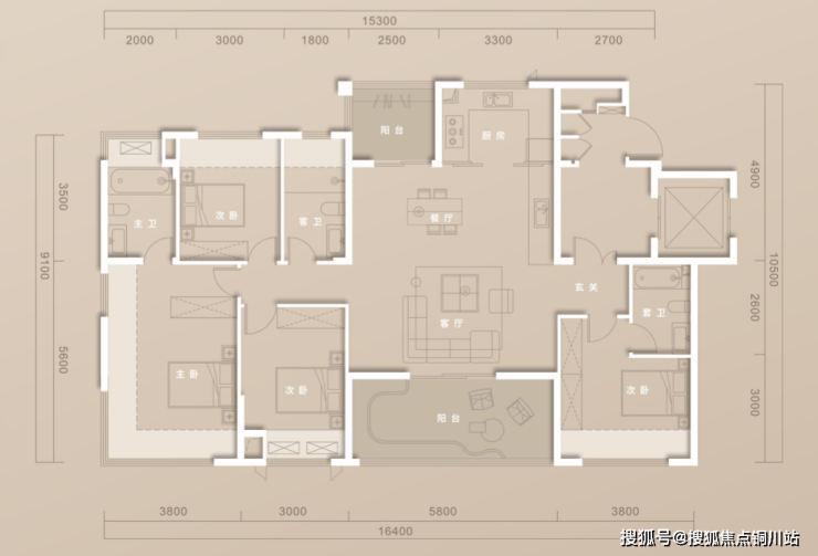 南北双阳台加持,进一步延伸空间层次,南阳台可打造观景休闲区,北阳台承担收纳、洗衣等实用功能,让生活与诗意共存。