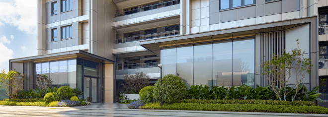 金属漆一体板+铝板线条外立面+南北全三玻两腔玻璃,视觉上更具轻盈质感。
