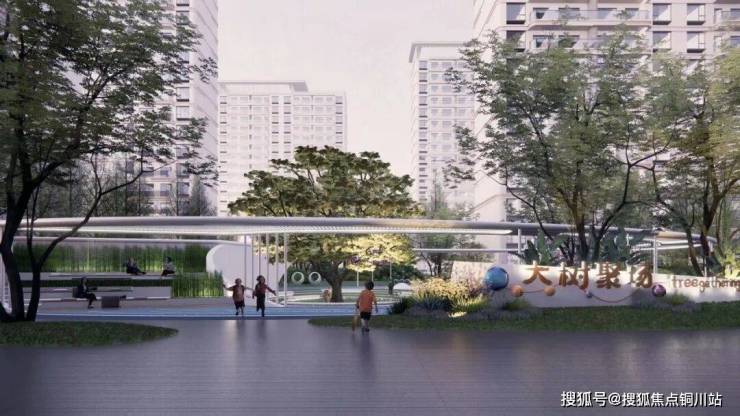 值得一提的是,我们在社区内打造了双大树聚场,如同大家去商场购物的体验一样,这来源于哑铃原理。大树聚场分布在社区的最北边和最南边,北边约3000㎡、南边约1800㎡的大树聚场,通过树让业主有种聚拢的体验,打造集儿童、青年、老人于一体的全龄空间。其景观节点包括慢跑道、阳光草坪、会客厅等,还有宅间花园,感受不同景观的萦绕。