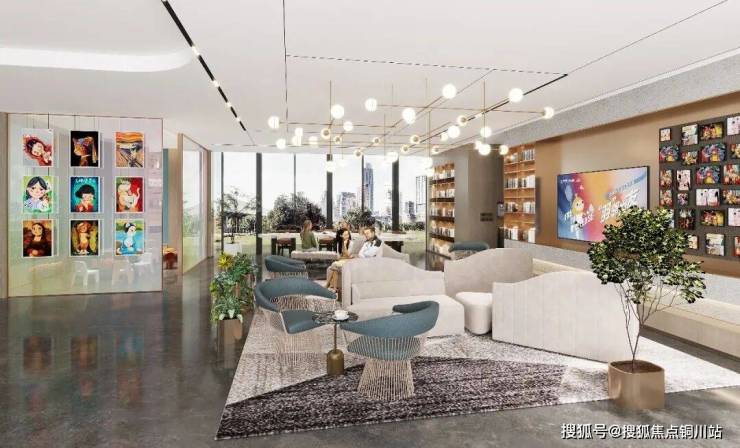 行人落客之后,就会看到迎宾的门厅,堂客厅则有贴心设计的儿童停留区域,供打车等待时孩子玩乐嬉戏。同时堂客厅也有会客的功能,像酒店迎宾厅中喝茶聊天的下午茶空间,另外的一个主空间可以方便业主办事,让这种真正的迎宾楼、堂客厅、社区办事厅能够连接起来成为一个真正生活综合体,再结合这种绿树成荫的落客区,让生活非常惬意和舒适。