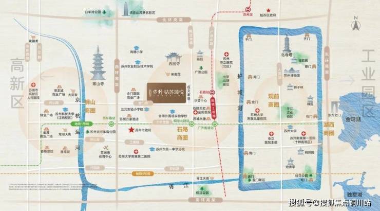 医疗配套:楼盘周边医疗资源较为丰富,直线 3km 范围内有 6 个一级及以上医院,其中苏州大学附属第二医院络香路院区距离楼盘 1.4km,苏州市立医院 (北区) 距离楼盘 2.1km。