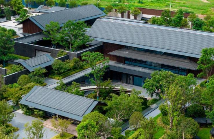 石材选用的是故宫同款冰州青、福鼎黑、帝王黑、整块台阶石;绿化采用的是几十年树龄的丹桂、乌桕……而且地面铺装、艺术造景,很多都是匠人手工雕琢而成。