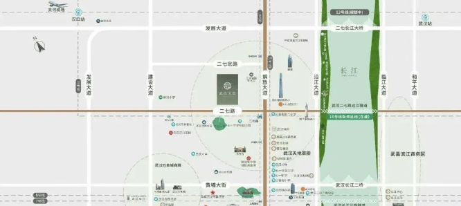 地段优势:位于江岸区二环内,与二七滨江商务区仅一路之隔,对面是在建的周大福金融中心,可共享区域发展利好。