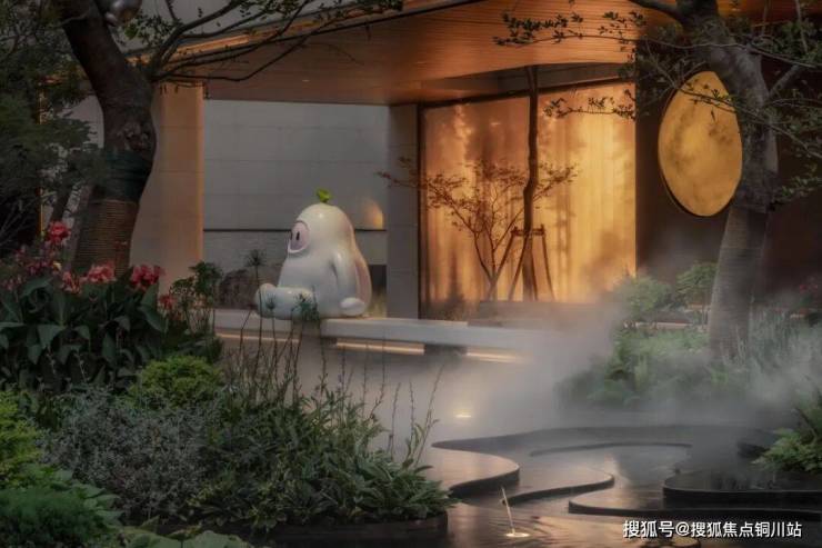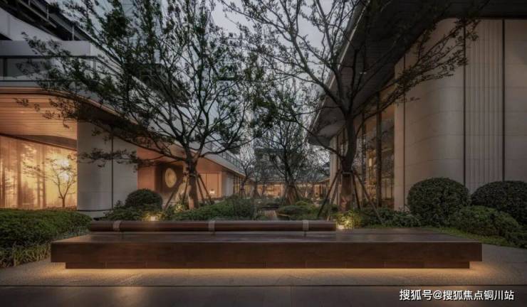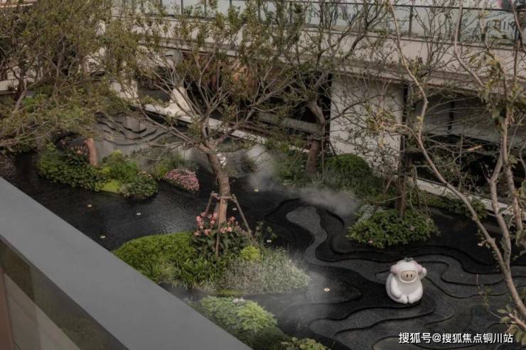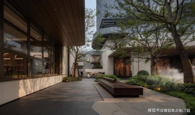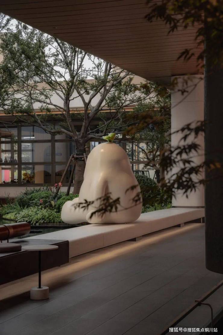 穿过社区大堂,便进入了“艺树溪谷”的静谧世界。这座下沉庭院被建筑与檐廊温柔环抱,仿佛一处隐于市井的秘境。