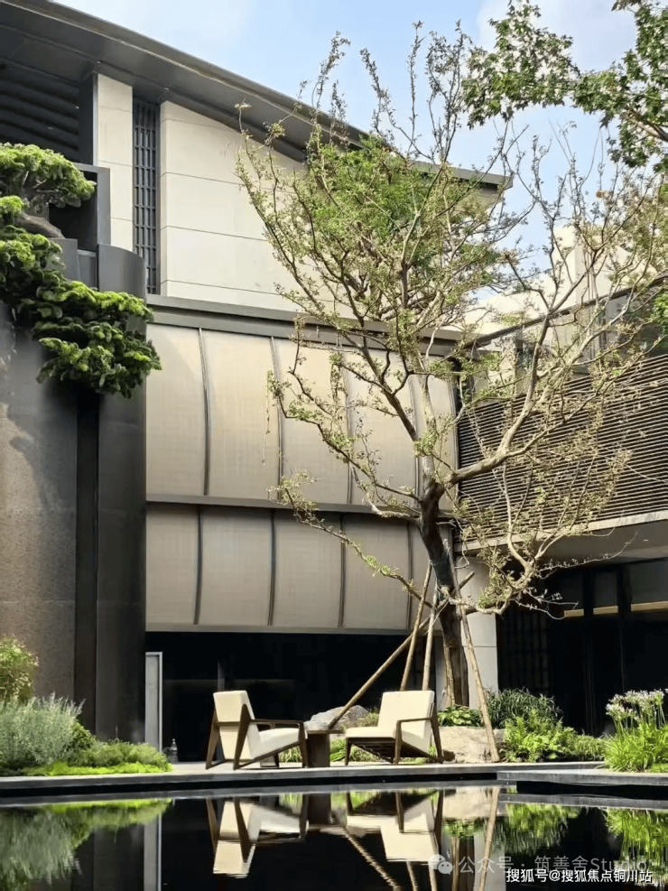 下沉庭院,“泗水归堂·帆影泽”,以现代手法诠释古典智慧,彰显空间美学的极致魅力。采用简约纯粹的米色石材为基调,巧妙融入深色石材线条,营造出艺术与韵律的和谐交融。步入此空间,随着空间逐层展开,您将深刻体验到逐步升级的情感价值。下沉庭院中,中央水景悄然升起,静水微澜,风起涟漪。元宝枫与朴树如同漂浮于水面,枝叶延伸至平台之上,水中的倒影映衬出别样景致。四周宽敞的游廊步移景异,立柱将庭院美景框入如画长卷。檐下的灰空间模糊了室内外的界限,让您在穿行之际,远离尘嚣,享受宁静。这正是金茂精准把握高端业主需求,展现出的敏锐洞察力。