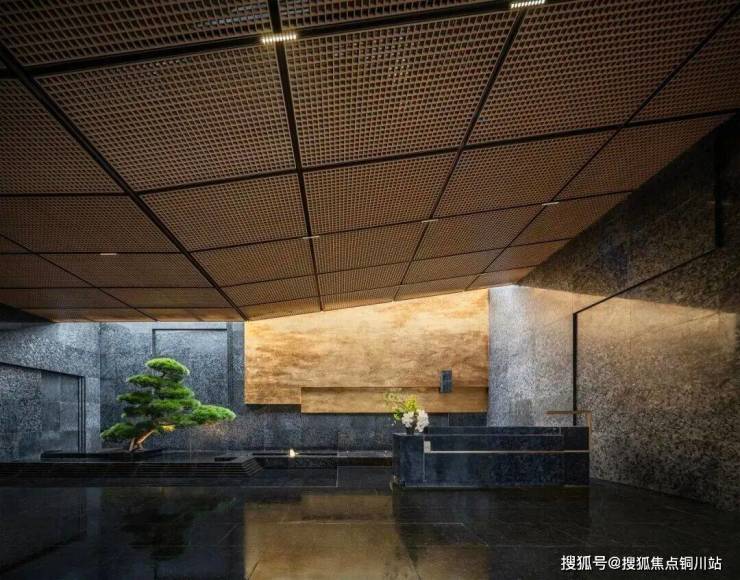高墙阔院,是中国人骨子里的情怀。一道约5米高的巍峨高墙,大隐于市,围合一方礼序井然的车马庭院。约60米高定陶板大门,无言诉说着门第的显赫。两株约7米高进口罗汉松,历经千里,全冠移栽,于此成荫。金属格栅与天然奢石交织,诠释世家气度与文化底蕴。
