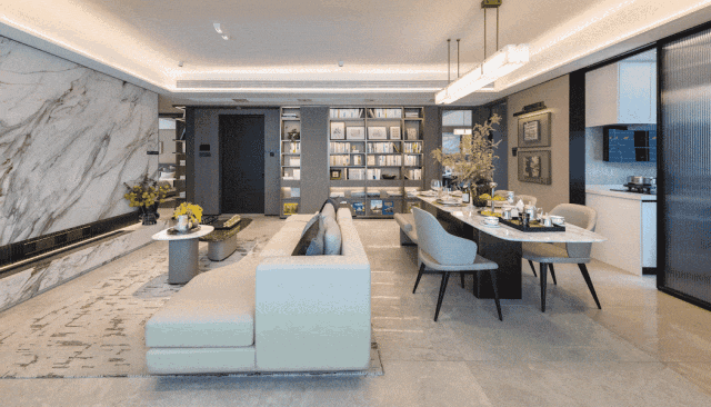 客厅面宽高达约6.8米,可拓展独立多变可开合书房可以开拓家庭影院、亲子互动区、钢琴区、茶室等,营造不同的生活场景,还可与客厅联通形成完全开放的交流空间,特别适合亲朋宴请或home party。