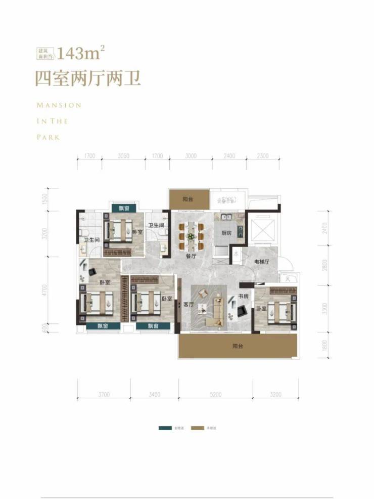 约143㎡户型在有限空间内,做到“带电梯前厅”,大面宽、小进深,小公摊、多赠送,南北通透、兼具周正、实用、前卫……通透、采光、视野俱佳,几乎已经是无可挑剔!