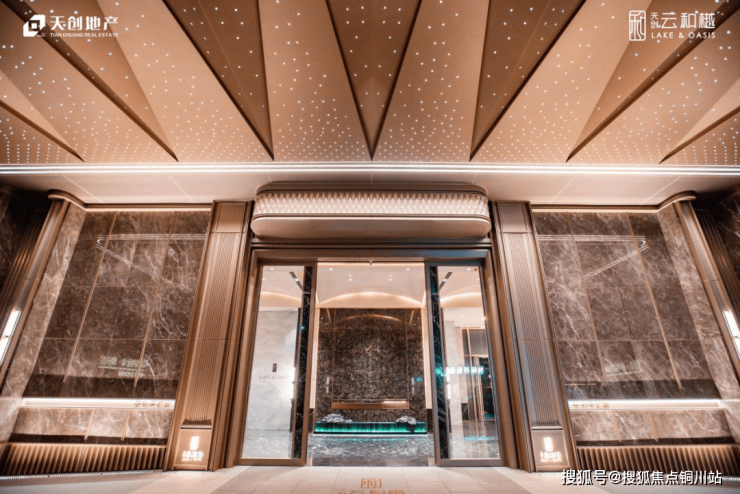 在没有交房情况下,从酒店式大门到高品质公区已经呈现在客户面前,对标2w+豪宅标准国际五星酒店落客区26米长,高约5.8米超越酒店的大门,非常大气。