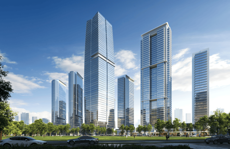 项目E地块的地标塔楼,中区将作为武汉城建集团总部办公地。