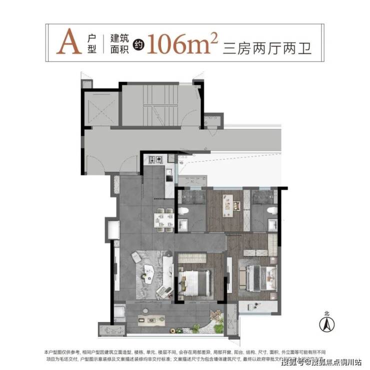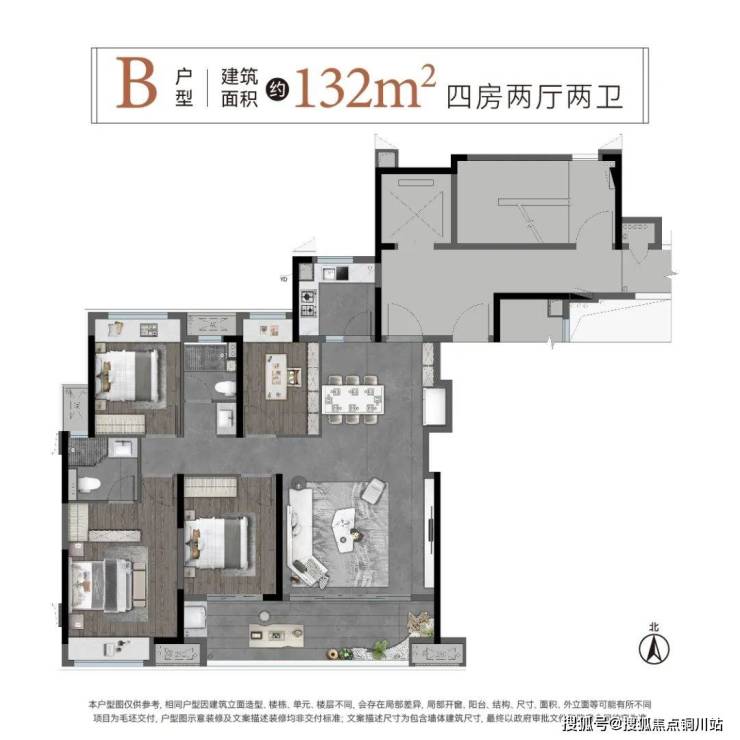 户型:一共有4个户型,高层是106+132㎡的组合,小高是143㎡的四房,洋房是170㎡的四房