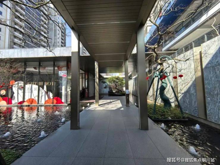 内部园林有多处水景,利用台阶、叠水、绿植将整个园林做得也很有层次和设计感。