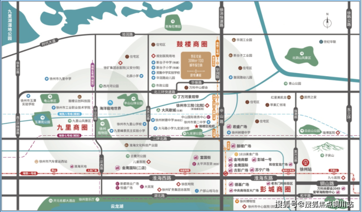 这块地一路之隔就是大龙湖风景区,出门就是地铁2号线大龙湖站,周边有彭祖大道小学、紫金中学、徐州一中、大龙湖国际会议中心、伊敦康得思酒店等配套。
