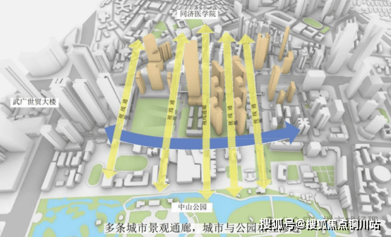 •五大地块与中山公园形成4条垂直景观视线通廊,最大化利用公园景观资源