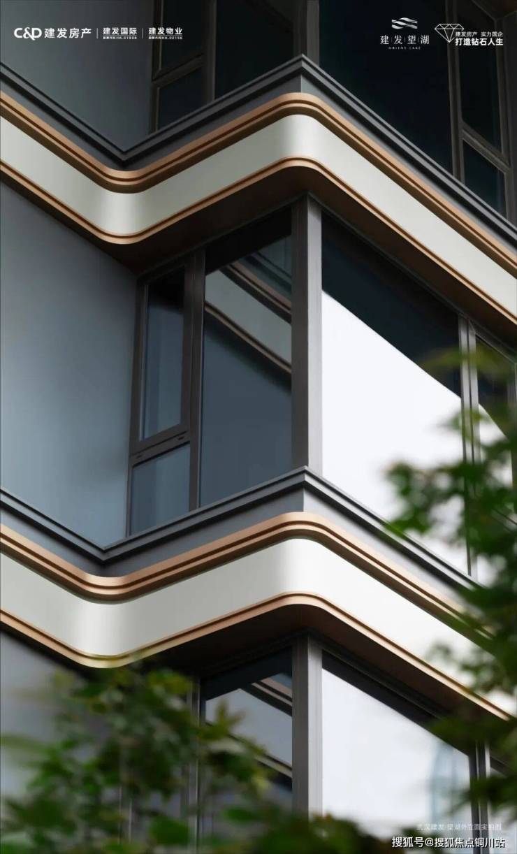建发·望湖的建筑立面采用铝板及石材,主体立面以水平线条为框架,取法华夏都城的建筑礼仪,如翼轻盈的飞檐塔冠,挑起一线沙湖的天际脊梁,展现出专属于沙湖的东方美学,焕新武汉建筑封面。