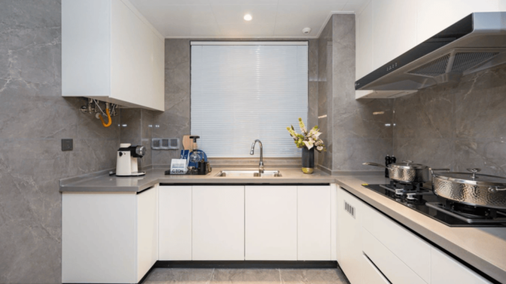 厨房半开放式设计,烹饪区、操作台及洗涤区都有各自相对独立的区域,动线无缝衔接,让烹饪更安全快速。