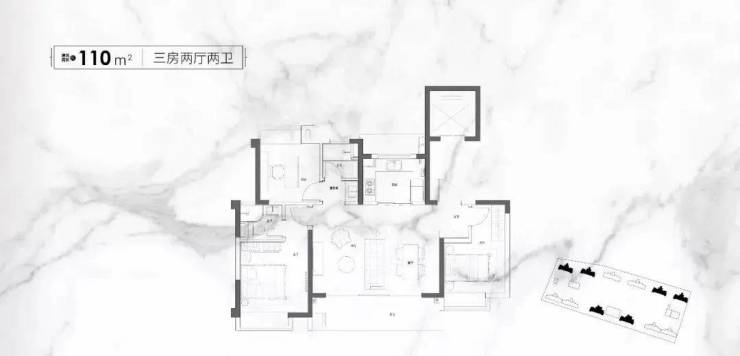 建面约110㎡三房两厅两卫户型,起步即封神。